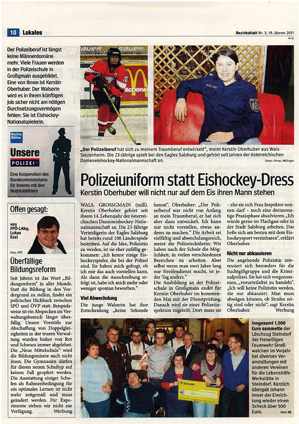 Kerstin Oberhuber nicht nur zukünftige Polizistin im Beruf sondern auch Polizistin in der Abwehr der Salzburg Eagles !!